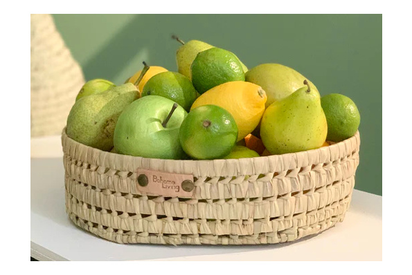 Panier rond plat en feuilles de palmier