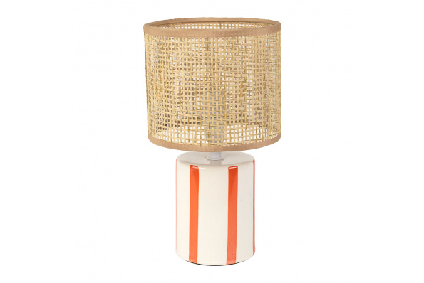 Lampe en rotin et céramique rayée corail et blanc h27cm