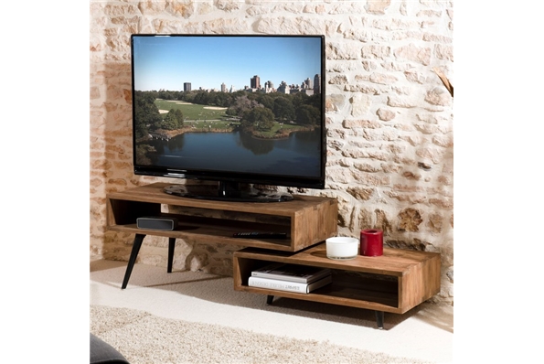 Meuble TV rotatif APPOLINE - teck foncé