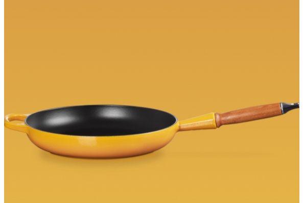 Poêle fonte émaillée Le Creuset jaune 28 cm