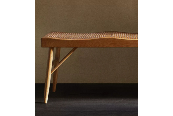 ![]() Bout de lit en bois et rotin