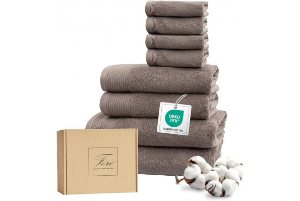 Ferò Lot de 8 Serviette de Bain Luxe, 100% Coton Premium Low Twist, 550 g/m², Ultra Doux & Absorbant