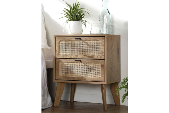 Tables de chevet, tiroirs en rotin