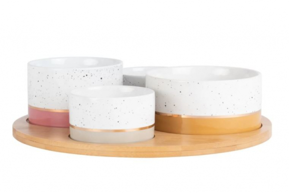 Plateau apéritif en bambou 4 bols en porcelaine