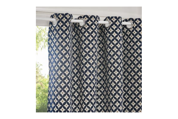 Rideau bleu motifs graphiques Maison du Monde