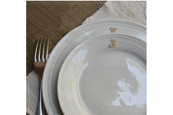 Assiettes de service monogrammées à nos initiales