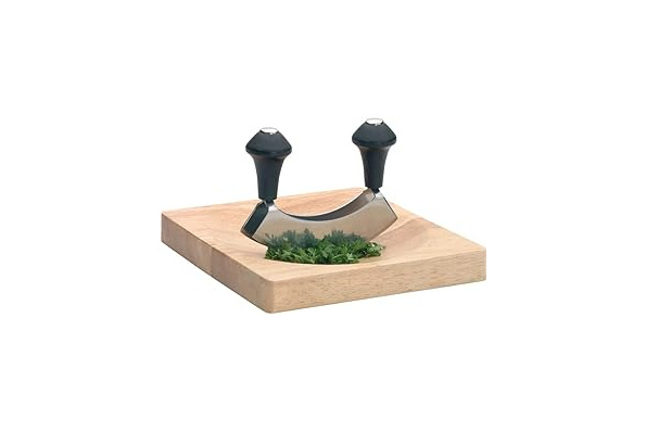KitchenCraft Mezzaluna Chopper Et Planche À Découper En Bois, Couteau À Double Lame En Acier Inoxyda