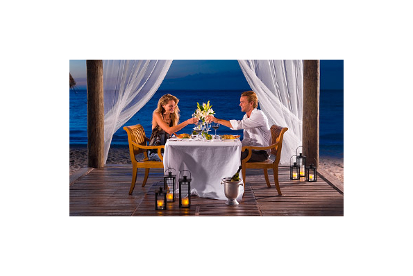 Diner gastronomique les pieds dans le sable