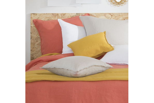 2 TAIES D'OREILLER CARRE BLANC LIN LAVE