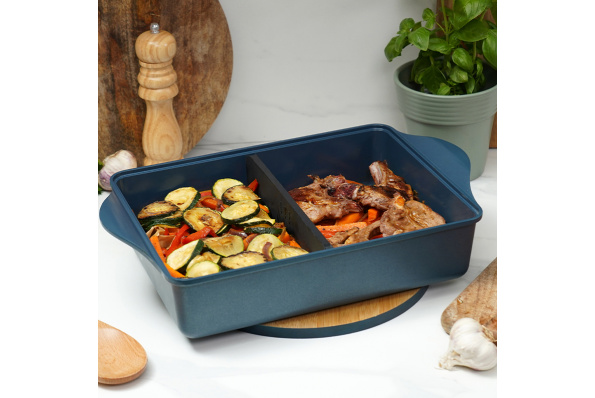 Descriptif : Ce plat unique remplace tous les autres plats : grâce à son séparateur breveté, ajustez facilement la taille de votre plat en fonction de vos envies et du nombre de convives.