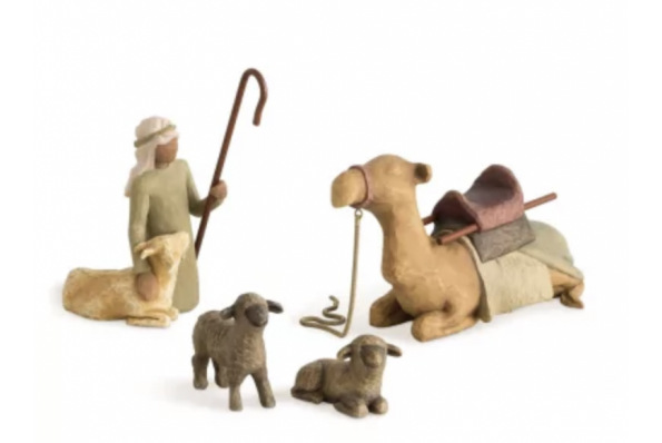 Crèche : Chamelier, chameau et moutons