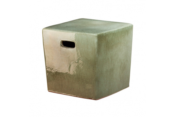 Tabouret cubique vert kaki en céramique
