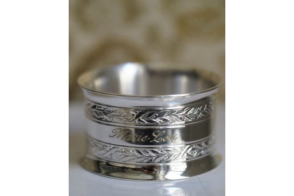 Rond de serviette Lauriers deux rangs métal argenté
