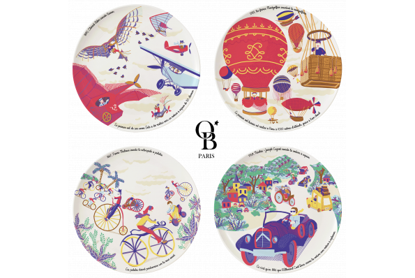 Coffret 4 Assiettes - Ours Blanc Paris - Grandes inventions françaises